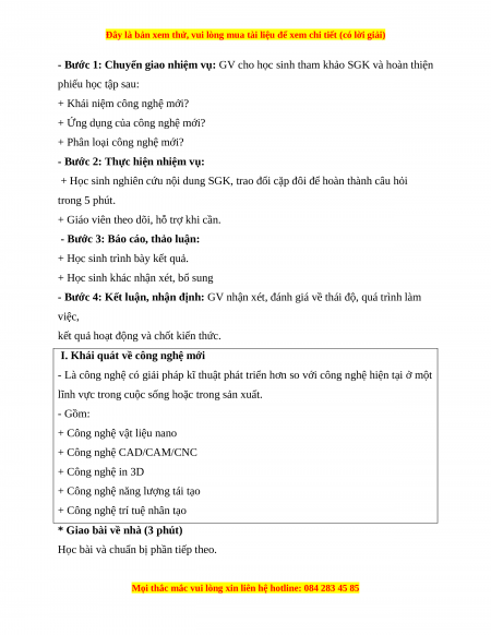 Hoạt động 2.1: Tìm hiểu khái quát về công nghệ mới (30 phút)