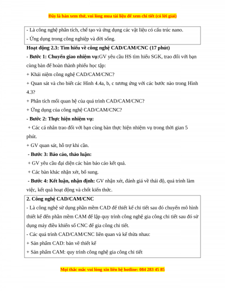 Hoạt động 2.3: Tìm hiểu về công nghệ CAD/CAM/CNC (17 phút)