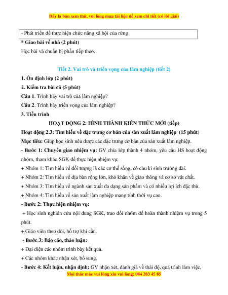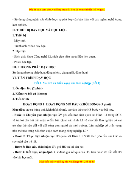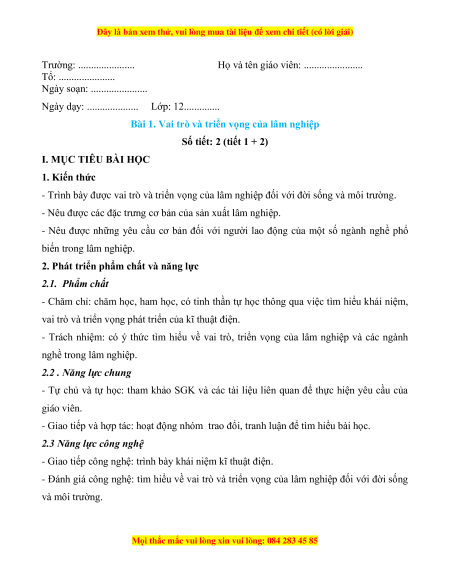 Tiết 1. Vai trò và triển vọng của lâm nghiệp (tiết 1)