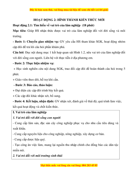 Hoạt động 2.1: Tìm hiểu về vai trò của lâm nghiệp (18 phút)