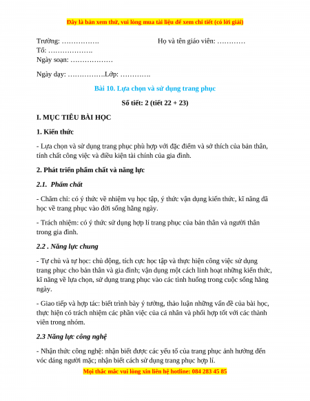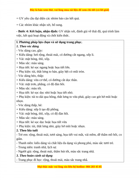 Giáo án Công nghệ 6 Bài 10 (Cánh diều): Lựa chọn và sử dụng trang phục