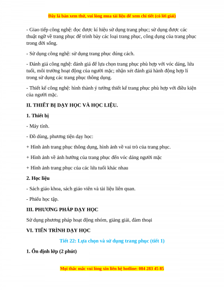 Tiết 22: Lựa chọn và sử dụng trang phục (tiết 1)