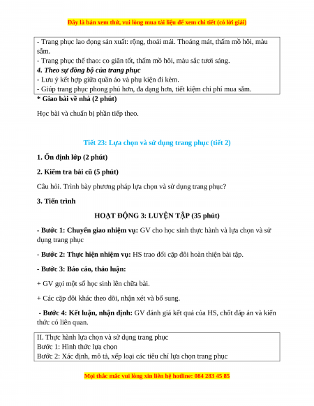 Tiết 23: Lựa chọn và sử dụng trang phục (tiết 2)