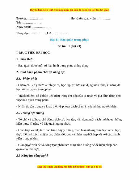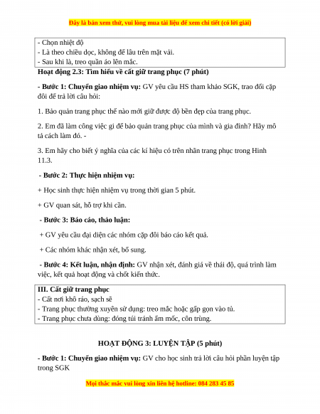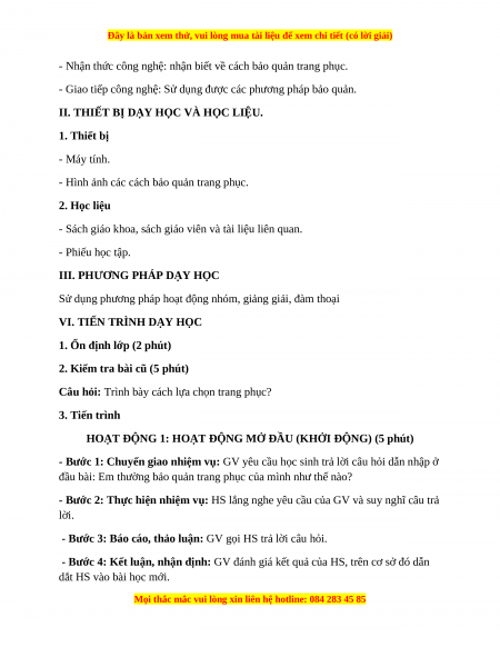 Giáo án Công nghệ 6 Bài 11 (Cánh diều): Bảo quản trang phục