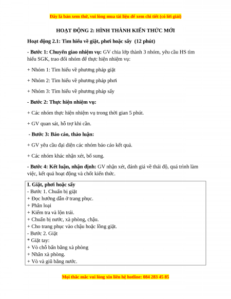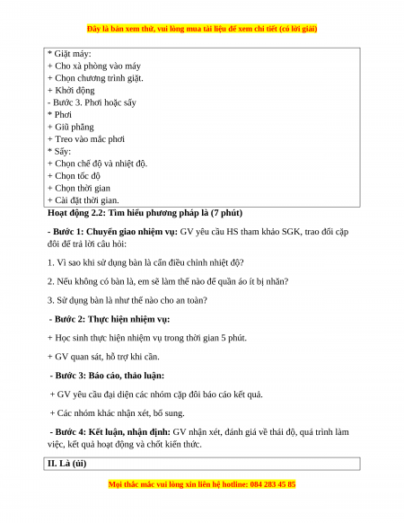 Hoạt động 2.1: Tìm hiểu về giặt, phơi hoặc sấy (12 phút)