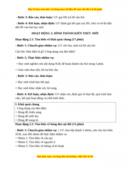 - Đánh giá công nghệ: xác định được nguyên lí làm việc của đèn điện.