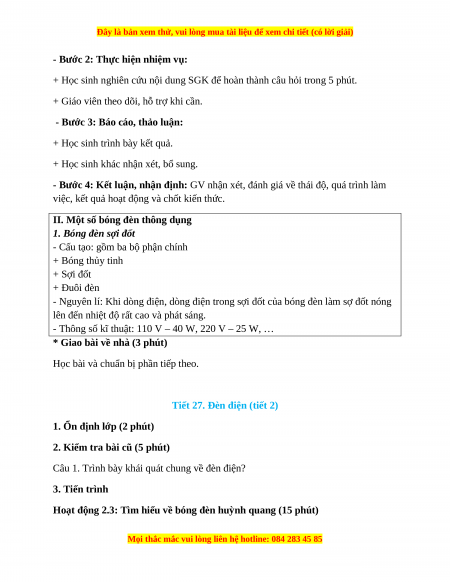Câu 1. Trình bày khái quát chung về đèn điện? 3. Tiến trình