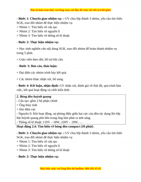 Hoạt động 2.4: Tìm hiểu về bóng đèn compact (10 phút)