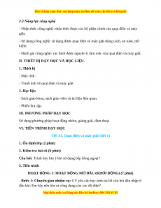 II. THIẾT BỊ DẠY HỌC VÀ HỌC LIỆU. 1. Thiết bị - Máy tính.