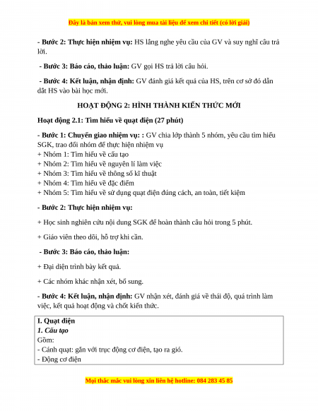 Hoạt động 2.1: Tìm hiểu về quạt điện (27 phút)