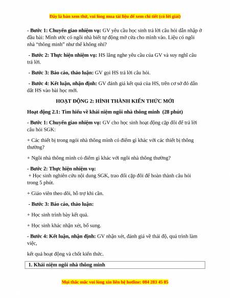 Hoạt động 2.1: Tìm hiểu về khái niệm ngôi nhà thông minh (28 phút)