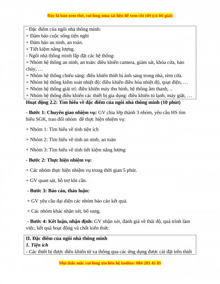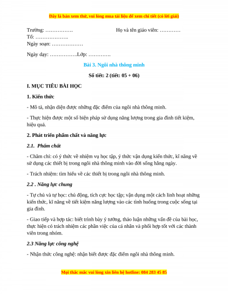 - Nhận thức công nghệ: nhận biết được đặc điểm ngôi nhà thông minh.