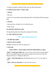- Sách giáo khoa, sách giáo viên và tài liệu liên quan. - Phiếu học tập.