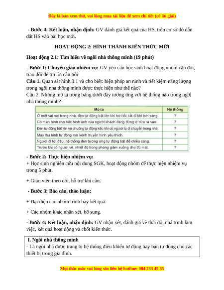 việc, kết quả hoạt động và chốt kiến thức. I. Ngôi nhà thông minh