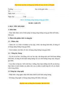 Giáo án Công nghệ 6 Bài 4 (Cánh diều): Sử dụng năng lượng trong gia đình