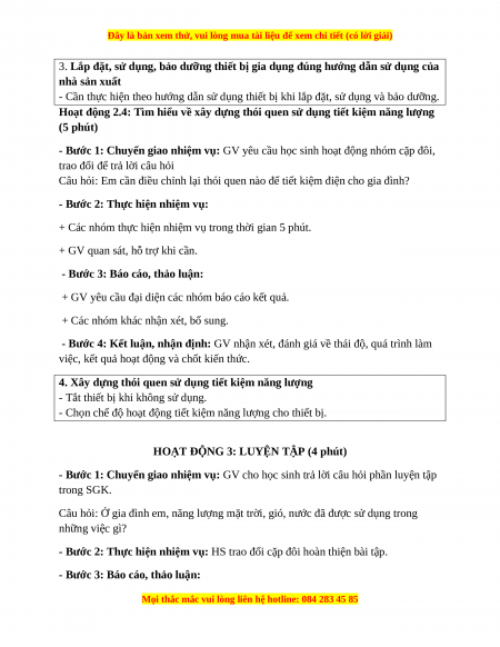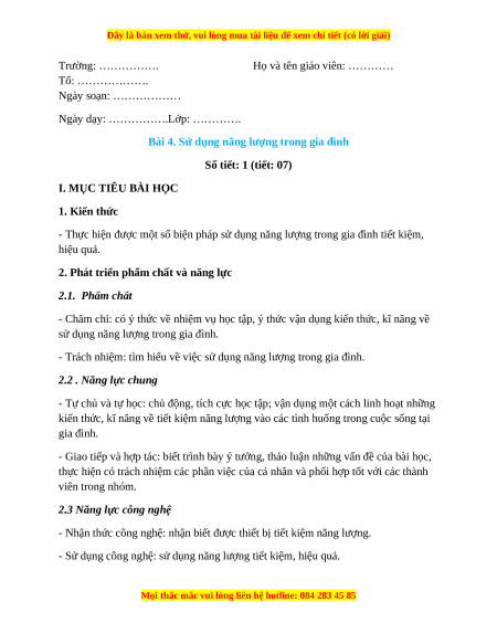 kiến thức, kĩ năng về tiết kiệm năng lượng vào các tình huống trong cuộc sống tại gia đình.