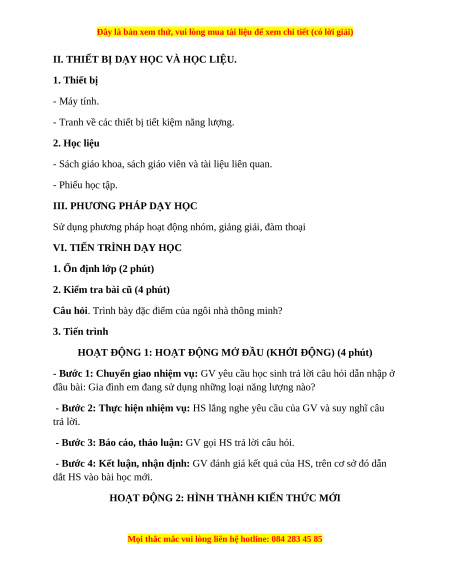 - Tranh về các thiết bị tiết kiệm năng lượng. 2. Học liệu