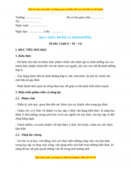 Tiết 9: Thực phẩm và dinh dưỡng (tiết 1)