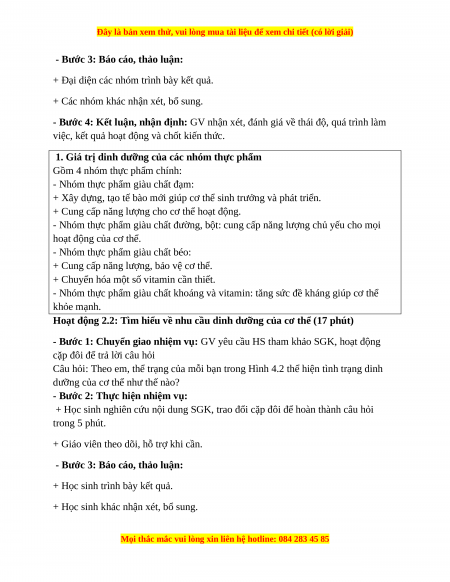 Hoạt động 2.1: Tìm hiểu về giá trị dinh dưỡng của các nhóm thực phẩm (18