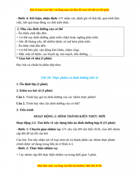 Tiết 10: Thực phẩm và dinh dưỡng (tiết 2)
