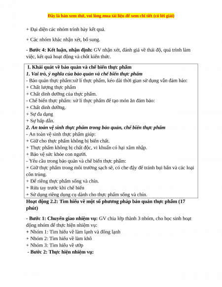 Hoạt động 2.1: Tìm hiểu khái quát về bảo quản và chế biến thực phẩm (13