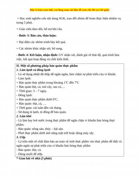 - Trình bày được các phương pháp bảo quản và chế biến thực phẩm phổ biến trong