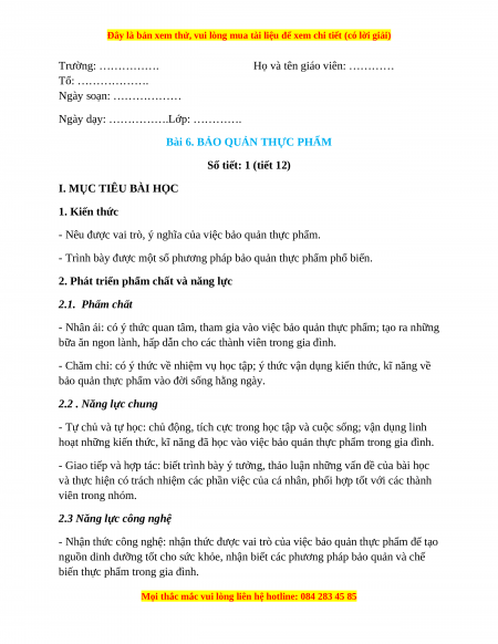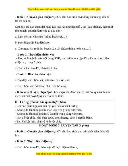 Giáo án Công nghệ 6 Bài 6 (Cánh diều): Bảo quản thực phẩm