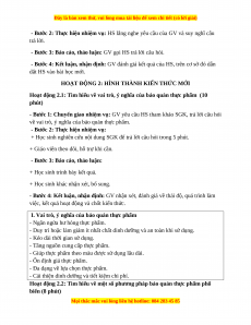 - Bước 1: Chuyển giao nhiệm vụ: GV chia lớp thành 3 nhóm, cho học sinh hoạt