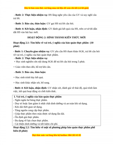 - Giao tiếp công nghệ: sử dụng một số thuật ngữ về phương pháp bảo quản thực