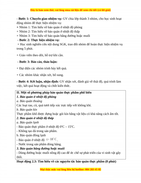 Hoạt động 2.2: Tìm hiểu về một số phương pháp bảo quản thực phẩm phổ