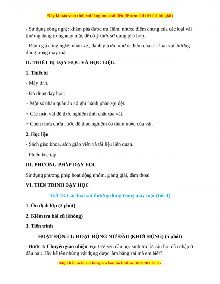 Tiết 18. Các loại vải thường dùng trong may mặc (tiết 1)