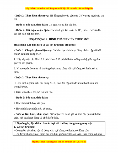 Hoạt động 2.1: Tìm hiểu về vải sợi tự nhiên (18 phút)