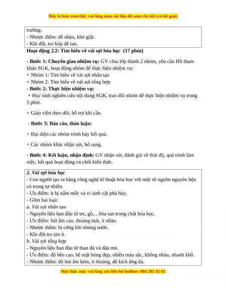 Hoạt động 2.2: Tìm hiểu về vải sợi hóa học (17 phút)