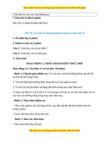 Hoạt động 2.3: Tìm hiểu về vải sợi pha (20 phút)