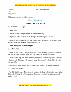 Ngày dạy: …………….Lớp: …………. Bài 8. THỜI TRANG