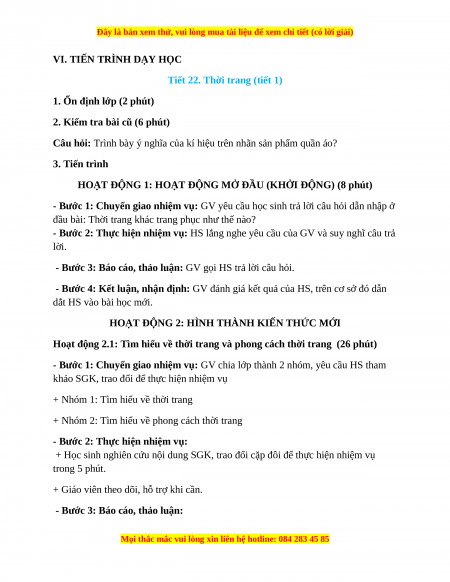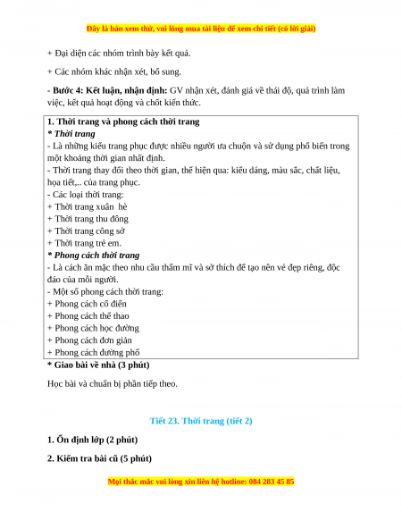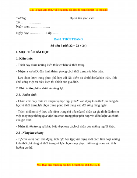 Giáo án Công nghệ 6 Bài 8 (Chân trời sáng tạo): Thời trang