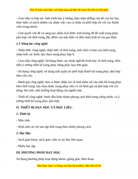 - Giao tiếp công nghệ: Sử dụng được các thuật ngữ để trình bày về thời trang, biểu