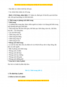 - Nhận thức công nghệ: nhận biết về thời trang, tính chất cơ bản của thời trang,