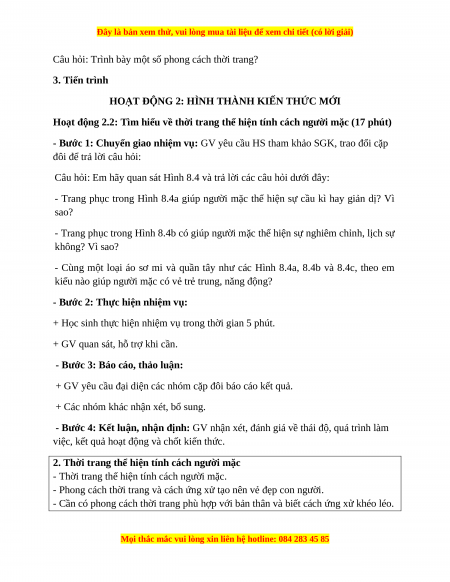 Hoạt động 2.1: Tìm hiểu về thời trang và phong cách thời trang (26 phút)