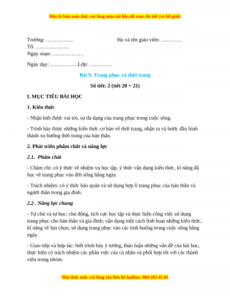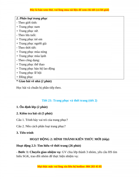 Tiết 21: Trang phục và thời trang (tiết 2)