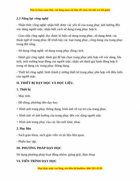 - Giao tiếp công nghệ: đọc được kí hiệu sử dụng trang phục; sử dụng được các