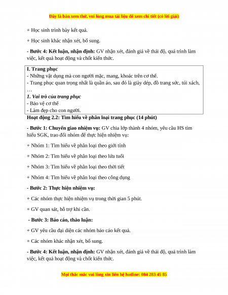 việc, kết quả hoạt động và chốt kiến thức. I. Trang phục