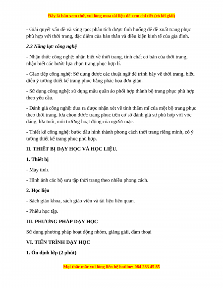 - Nhận thức công nghệ: nhận biết về thời trang, tính chất cơ bản của thời trang,