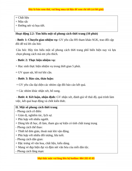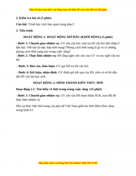 Giáo án Công nghệ 6 Bài 9 (Kết nối tri thức): Thời trang