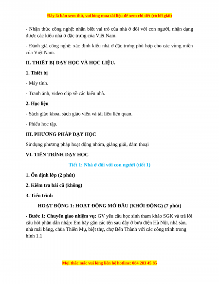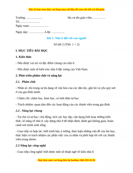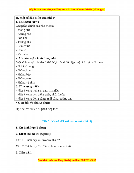 Bài 1. Nhà ở đối với con người Số tiết 2 (Tiết: 1 + 2)