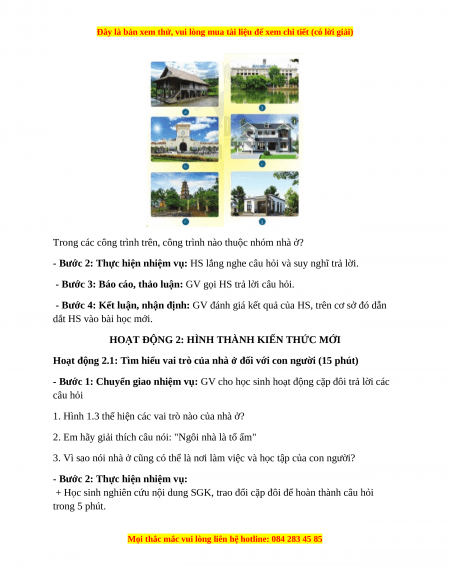 Hoạt động 2.1: Tìm hiểu vai trò của nhà ở đối với con người (15 phút)