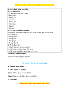 + Nhóm 2: Tìm hiểu về các khu vực chính trong nhà ở?