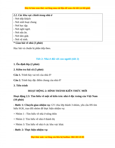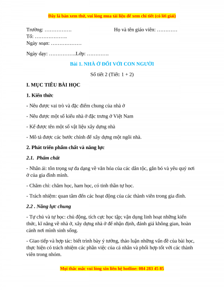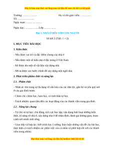 Bài 1. NHÀ Ở ĐỐI VỚI CON NGƯỜI Số tiết 2 (Tiết: 1 + 2)