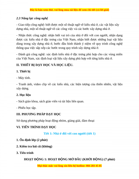 - Giao tiếp công nghệ: biết được một số thuật ngữ về kiểu nhà ở, các vật liệu xây