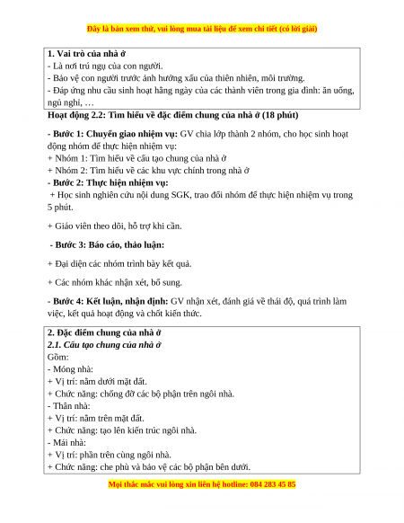 - Nhận thức công nghệ: nhận biết vai trò của nhà ở đối với con người, nhận dạng
